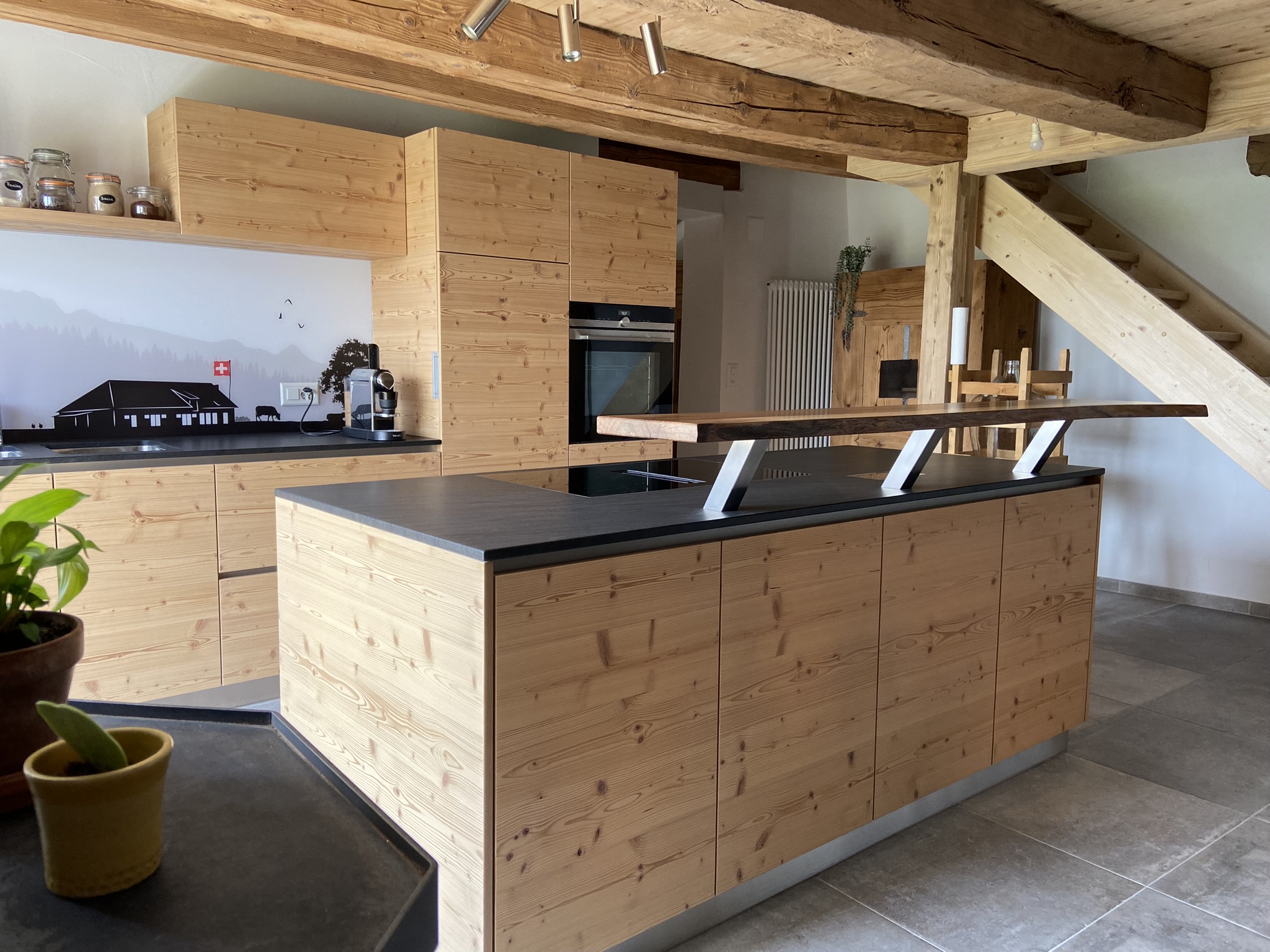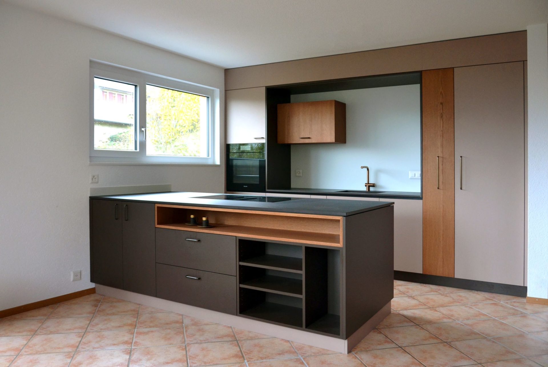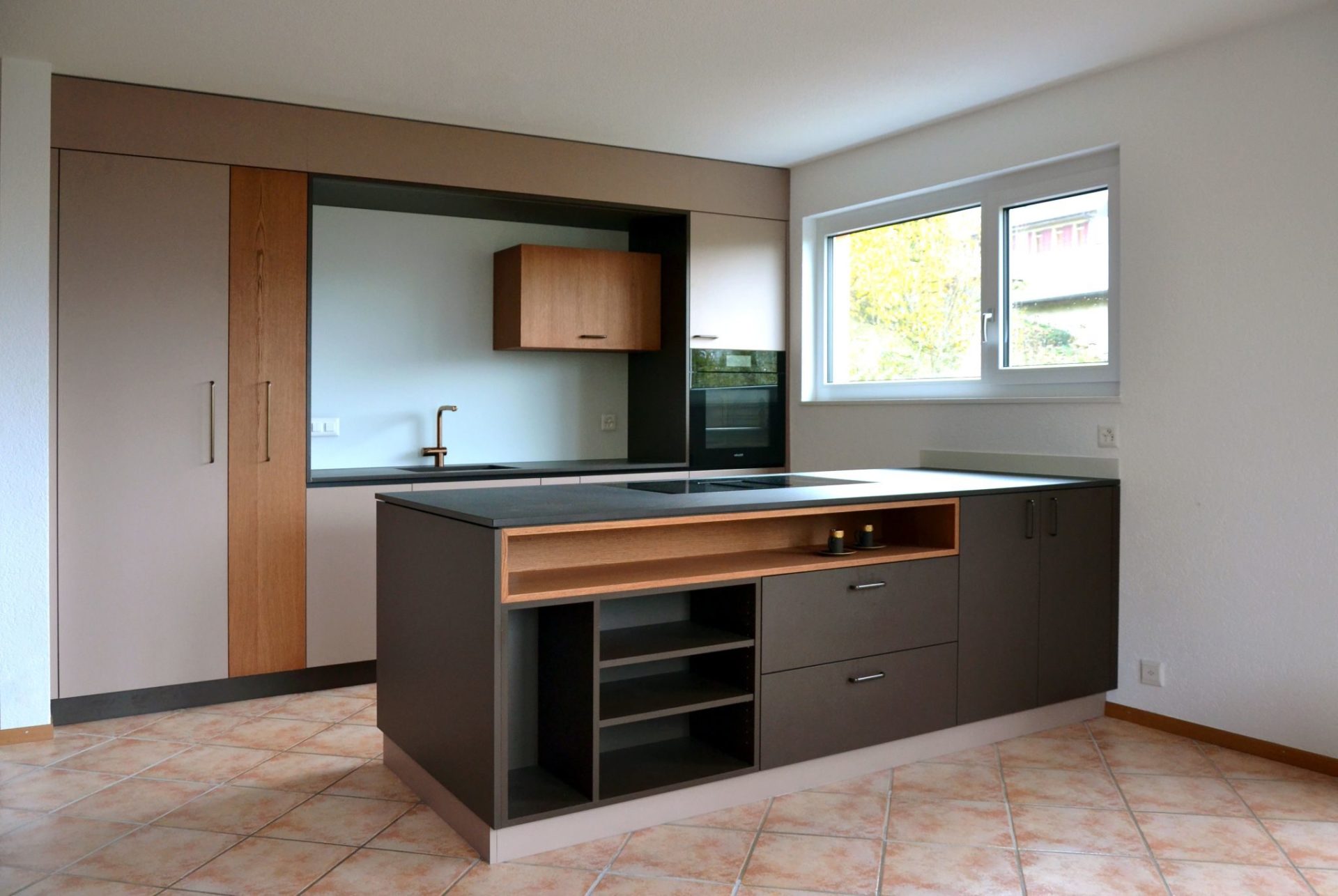 Une cuisine sur mesure s’adapte parfaitement à votre espace et à vos besoins, sans aucune contrainte. Avec Deriaz SA, vous bénéficiez de solutions optimisées : grilles de ventilation discrètes, gain de place maximal, socle à hauteur normale, Label Bois Suisse si souhaité, intégration de toutes marques d’électroménagers et accessoires, choix de matériaux de qualité supérieure, détails spécifiques réalisables, et proximité de fabrication pour un service réactif.