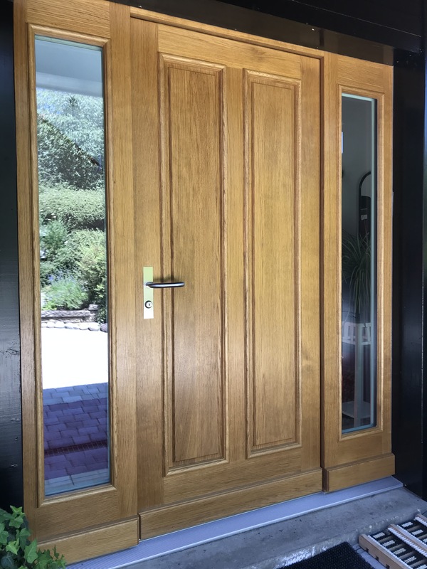 Remplacement d’une grande porte d’entrée par une nouvelle porte assemblée en bois de chêne