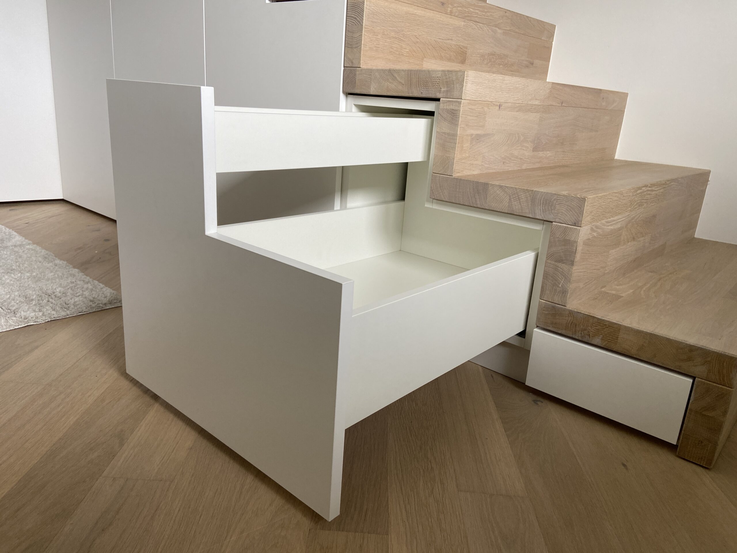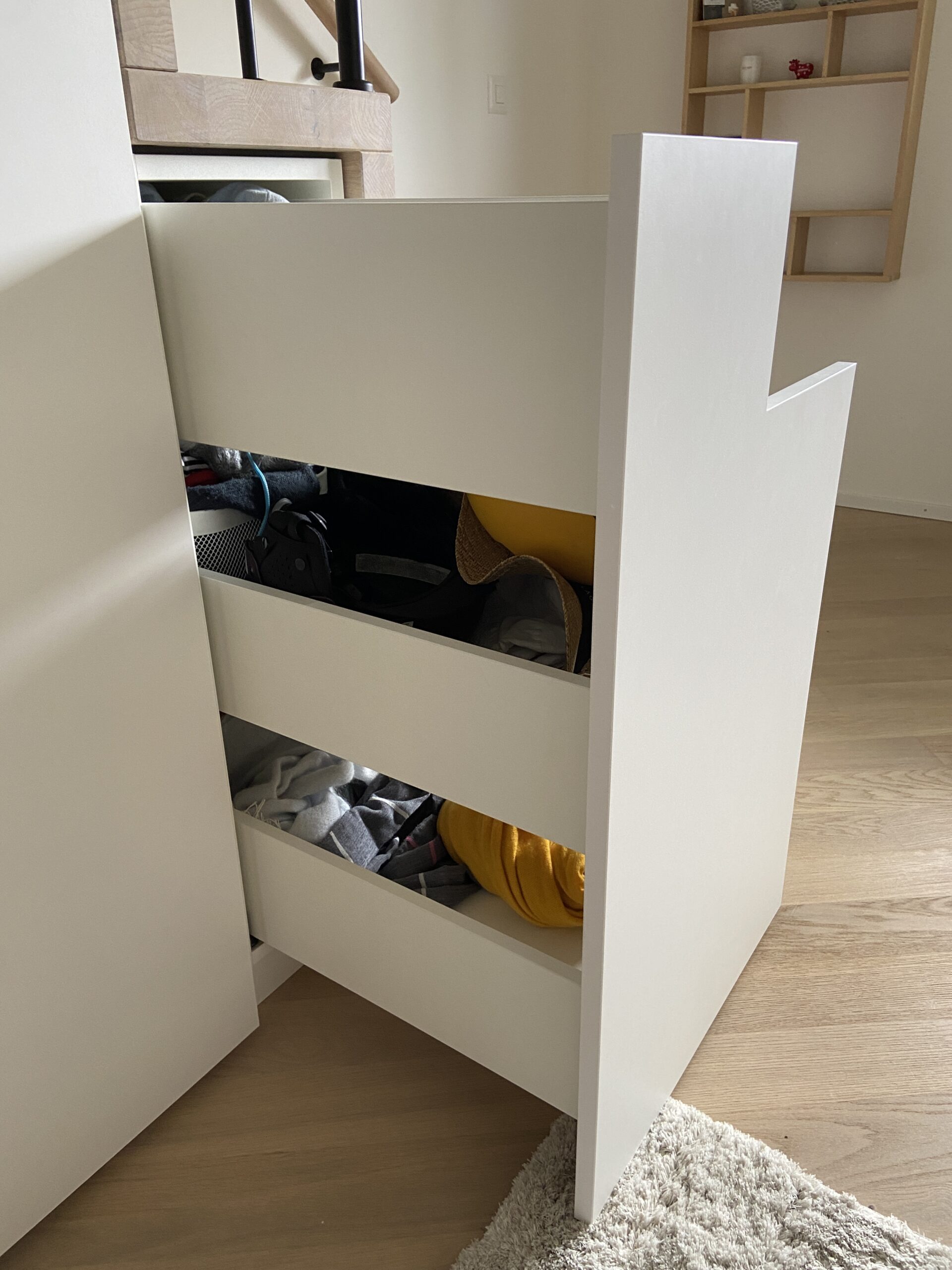 Tiroirs bois Blum Movento sur mesure afin d’optimiser la place