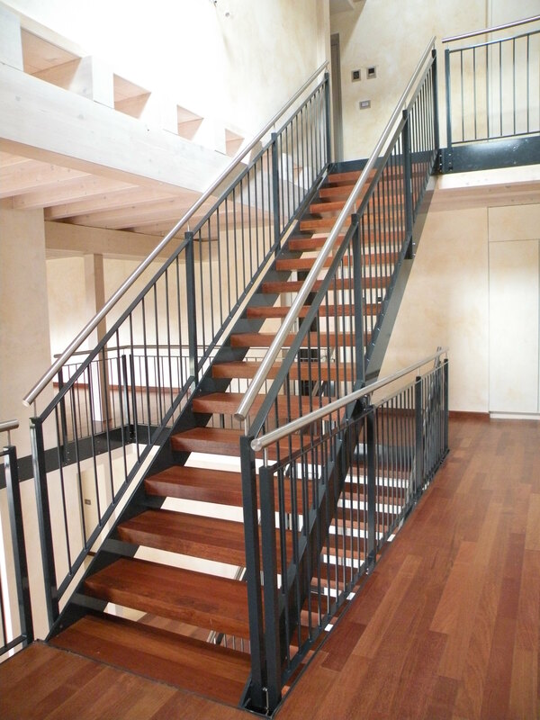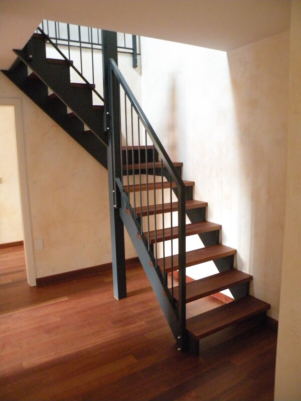 Réalisation de marches d’escalier en parquet sur des limons métalliques Essence: jatoba